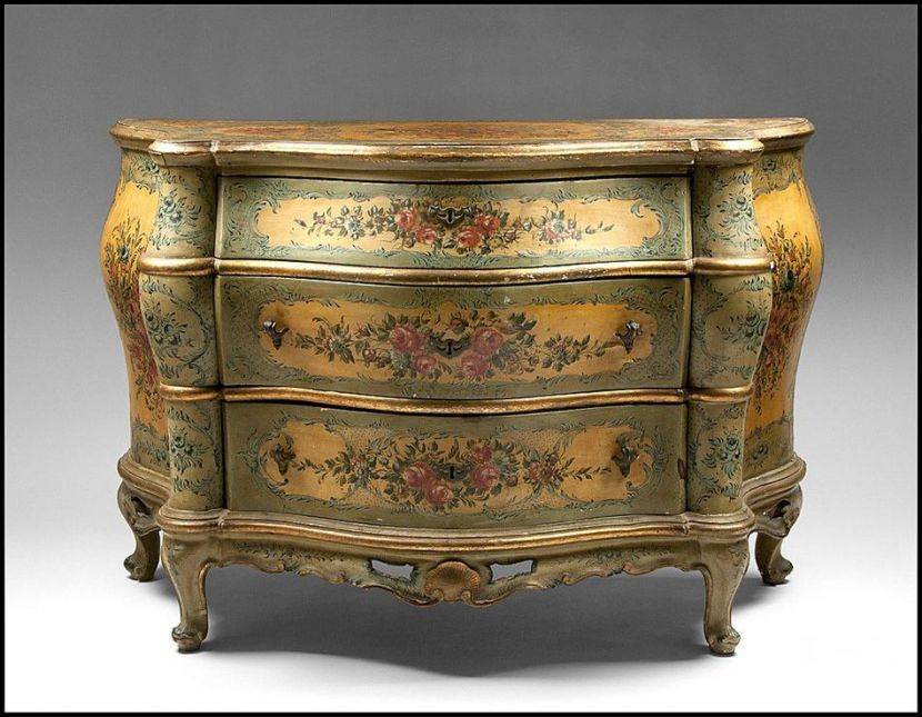 Работа начинается с затирки комода наждачной бумагой, чтобы избавиться от старой полированной краски или другого покрытия. Покрасьте комод двумя слоями выбранной краски и оставьте это изделие высыхать.