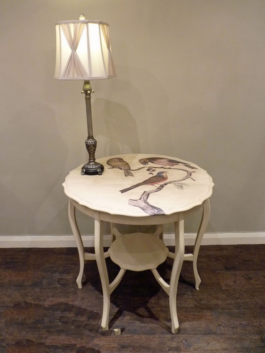 Но чаще всего, правильный «апгрейд» может вернуть вашего старого друга к жизни и преобразить его до неузнаваемости. Определившись с направлением, в котором будет оформлен стол, необходимо выбрать материалы для работы. Все необходимое для декупажа продается в специальных магазинчиках для творчества. Можно купить уже готовые аппликации для изделий в технике декупаж (рисовые карты), а можно использовать вырезки из газет и журналов, обычные кухонные бумажные салфетки (самый популярный материал для декорирования) и многое другое. Главное – фантазия. Выбрав картинки по вкусу, нужно создать общую композицию. Вы способны сотворить неповторимую уникальную вещицу, какой не будет ни в одном доме. А потом с гордостью демонстрировать ее гостям.