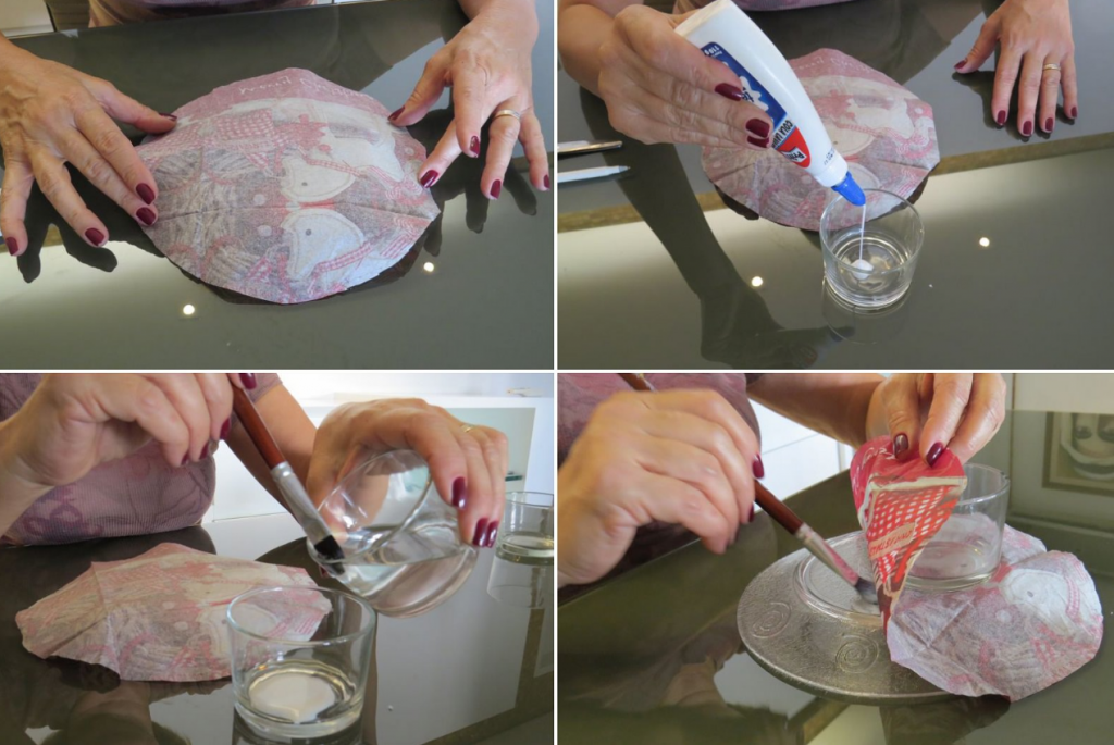 Обратная техника декупажа стекла для начинающих пошагово с фото выглядит следующим образом: