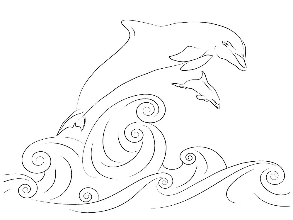 Дельфин (рисунок для детей может быть в виде выпрыгнувшего из воды млекопитающего) прыгающий из морской волны будет выглядеть динамично и красочно. А процесс его рисования и результат творческой деятельности подарят много радости.