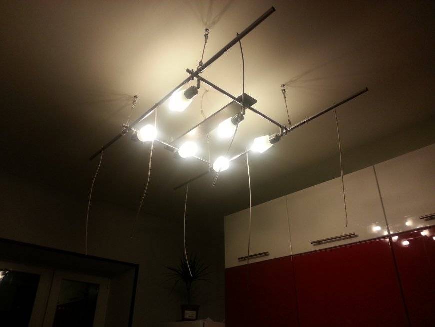 5. Проденьте в меньшее отверстие патрон, вкрутите лампу и повесьте люстру за подвес.
