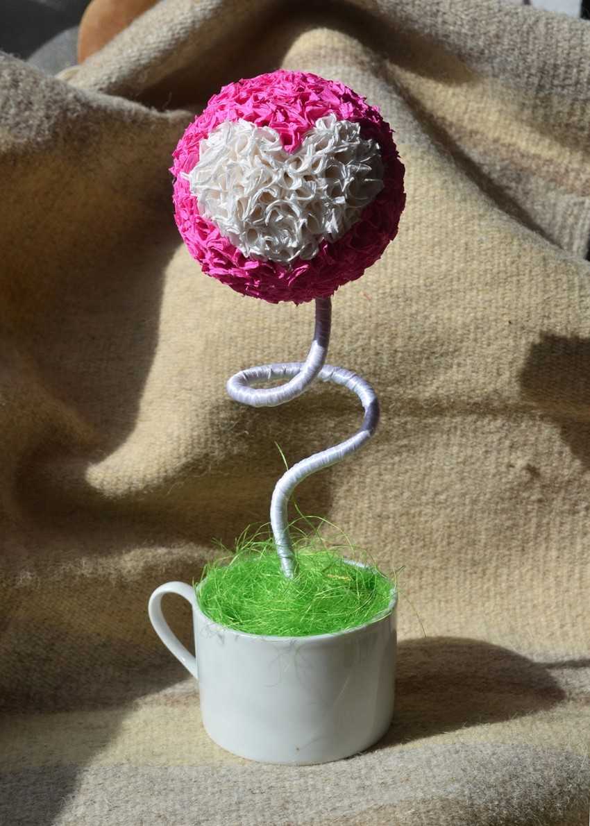 Для работы над топиарием из салфеток не понадобится много затрат. Практически всё необходимое любая хозяйка найдёт у себя дома. Поделка сделанная самостоятельно отлично украсит комнату и всегда будет радовать глаз или станет памятным подарком близкому человеку. Вдохновиться поможет просмотр картинок с изображением таких изделий.