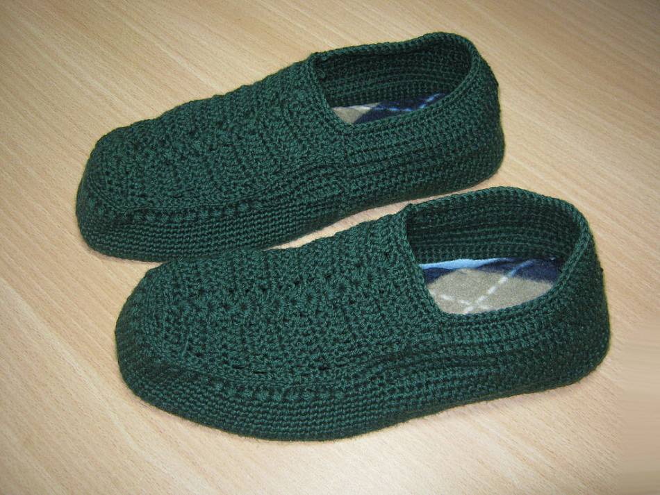 готовые мужские домашние тапочки крючком на войлочной подошве