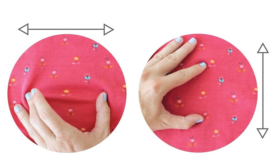 Возможно, кто-то подумает, ведь биэластичный трикотаж тянется в обоих направлениях, а тканый материал совсем не растягивается, значит можно раскроить и в поперечном направлении. Но это утверждение не верно.