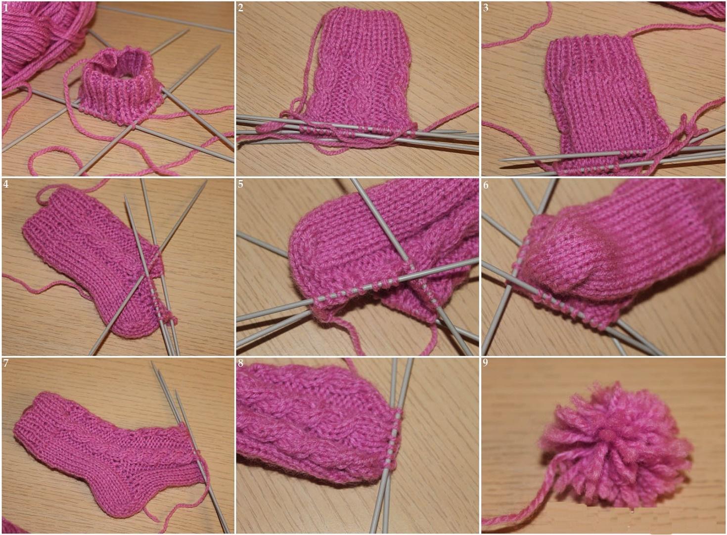 Отметим одну особенность, что данное количество единиц подойдет при наличии толстых ниток. Если нитки у вас не слишком толстые, наберите тридцать две петли (П). После набора их нужно разместить на четырех чулочных спицах, а пятую оставить для вязания. Далее выполняем вязание резинки один на один, чередуя лицевые и изнаночные петли.