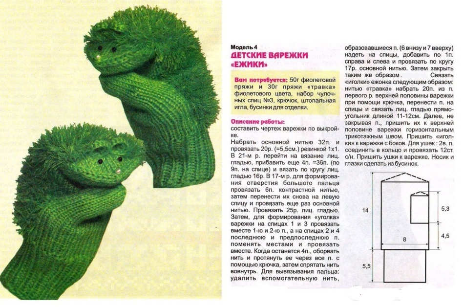 Подробное описание вязания варежек-ежиков смотрите ниже.