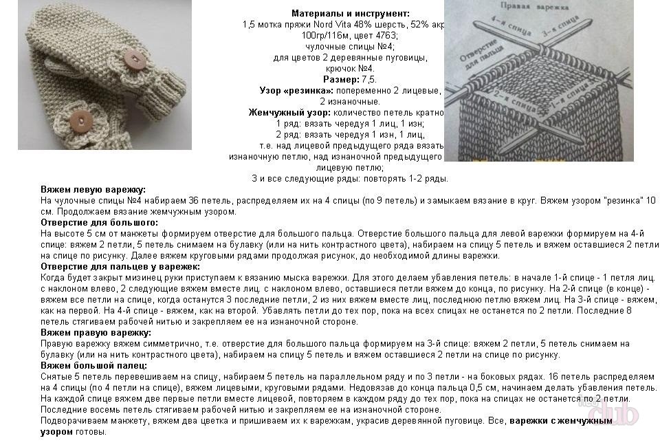 Инструкции для вязания базовой модели варежек спицами