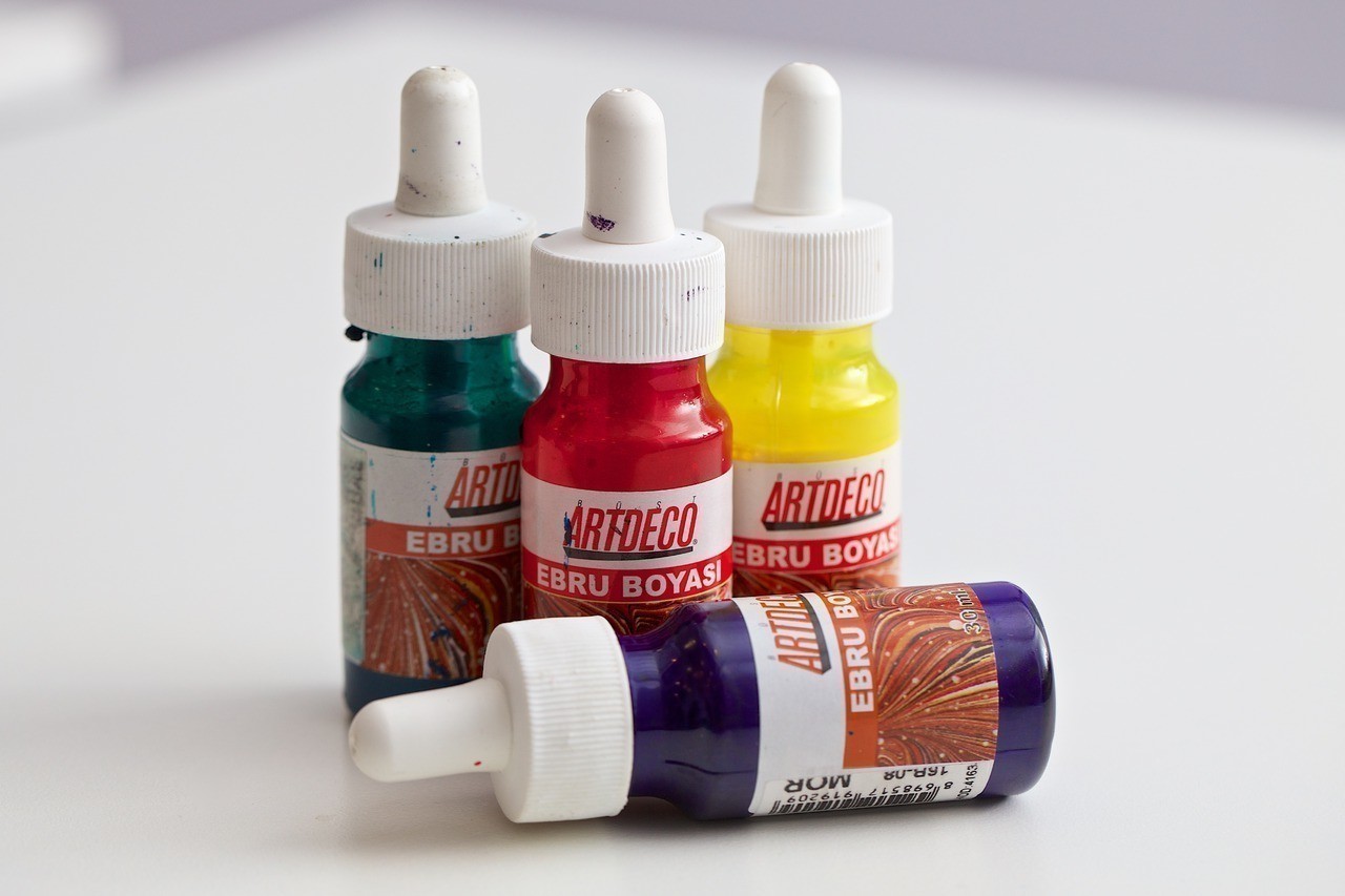 - Краски и пигменты для рисования по воде. В создании шедевров используются материалы, которые смешиваются с жидкостью. Они должны быть хорошо растворимыми и не оставлять осадок.