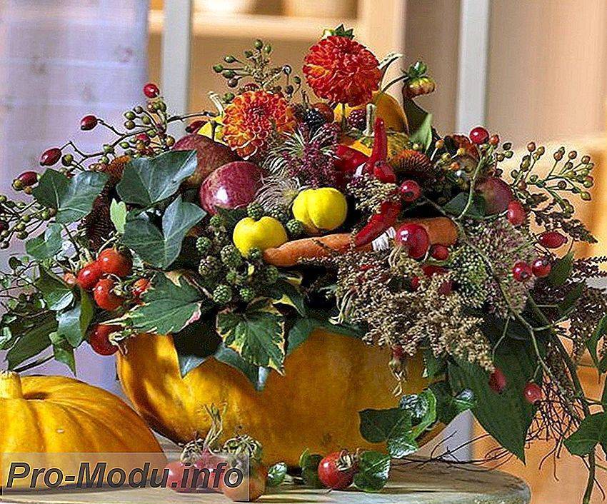 Используйте в своих букетах фрукты и ягоды, прутья, колосья злаковых, орехи, желуди. Также пригодятся сезонные овощи. Например, из кабачка или тыквы можно сделать вазу для букета.