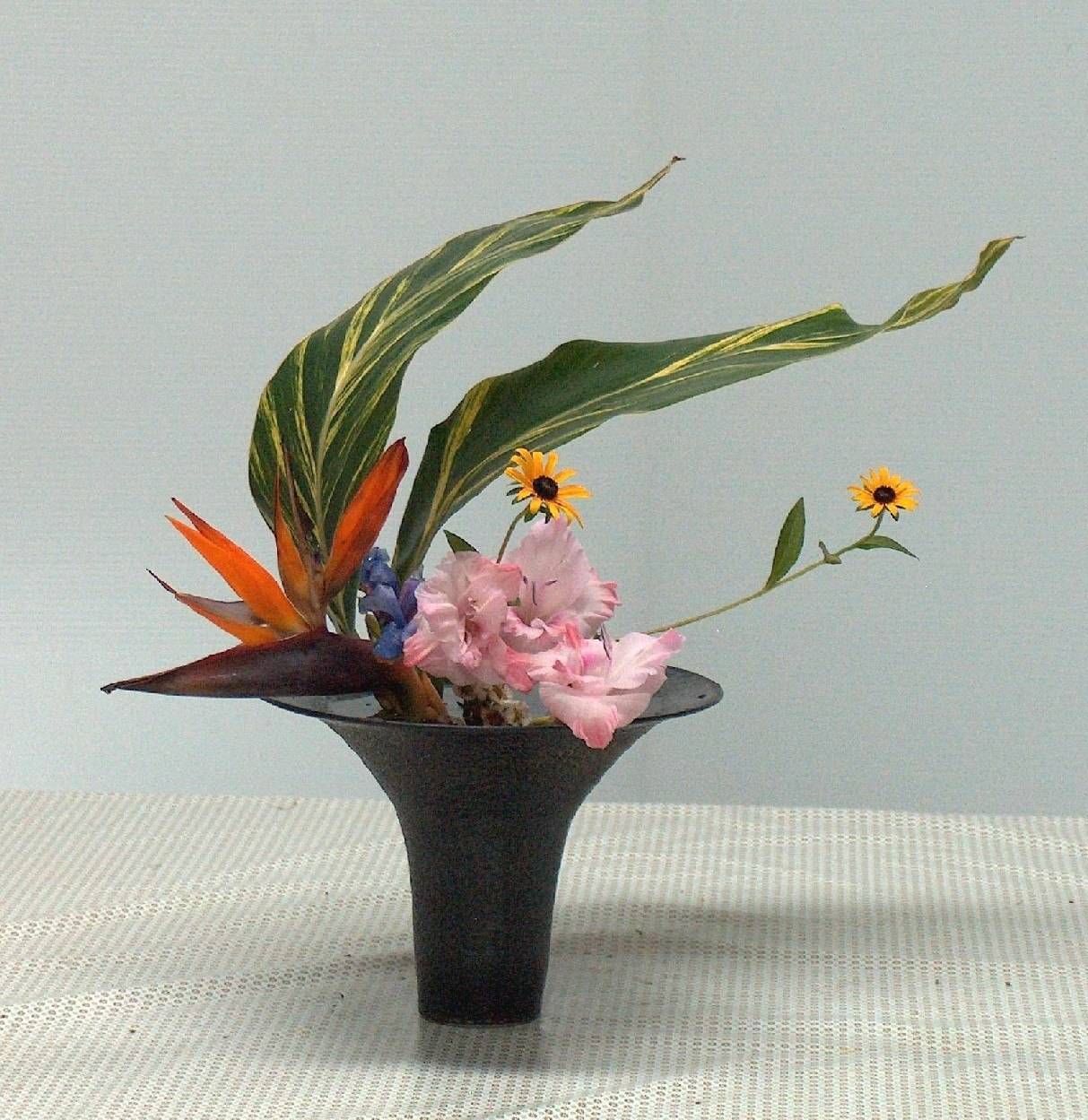 Он первым начал использовать в японских букетах наряду с природными материалами искусственные: металлические, тканевые, пластиковые изделия. С этого момента икебаны покинули пределы обычных домов и помещений, выставляясь теперь в парковых зонах, на тротуарах и даже в метро.