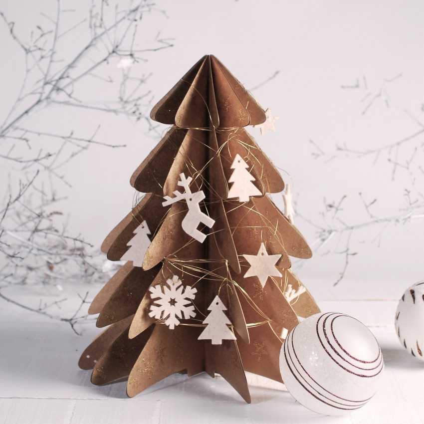 Новогодняя елка своими руками сделанная из картона станет отличным рождественским декором.