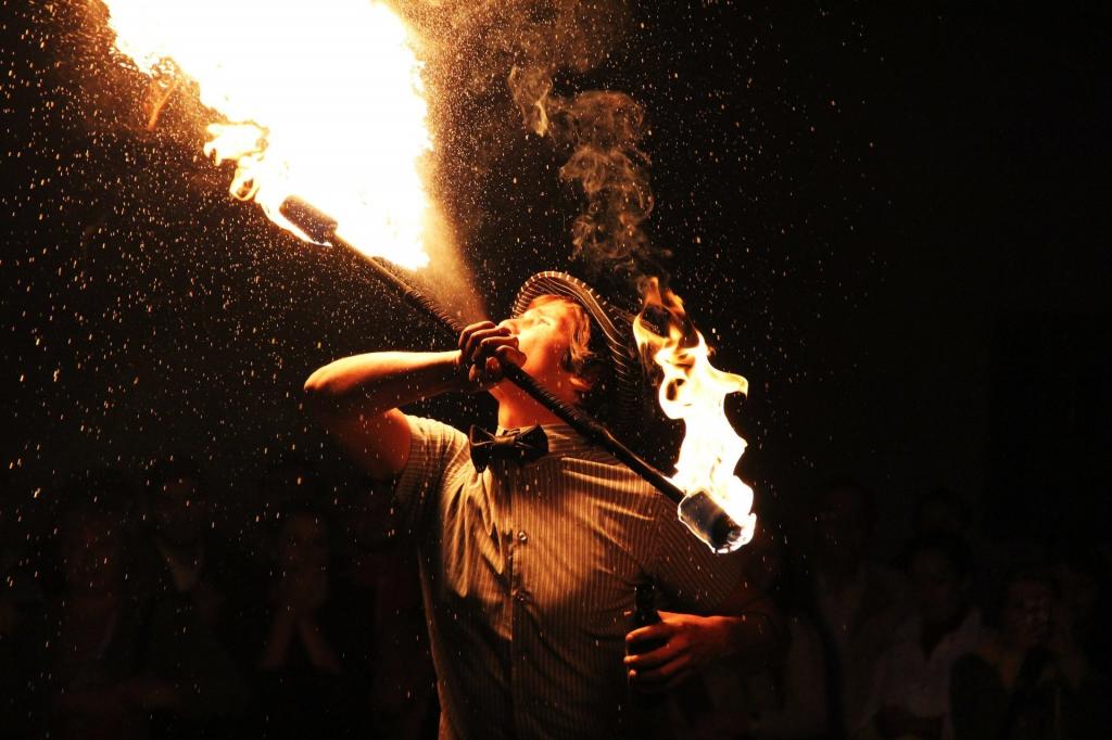 Но не стоит забывать, что фаер шоу это огненное шоу и соблюдение мер безопасности обязательно. Так что возлияние горячительного придется отложить до завершения выступления, а то из крутильщика огня легко превратится в выдувальщика или тушильщика.