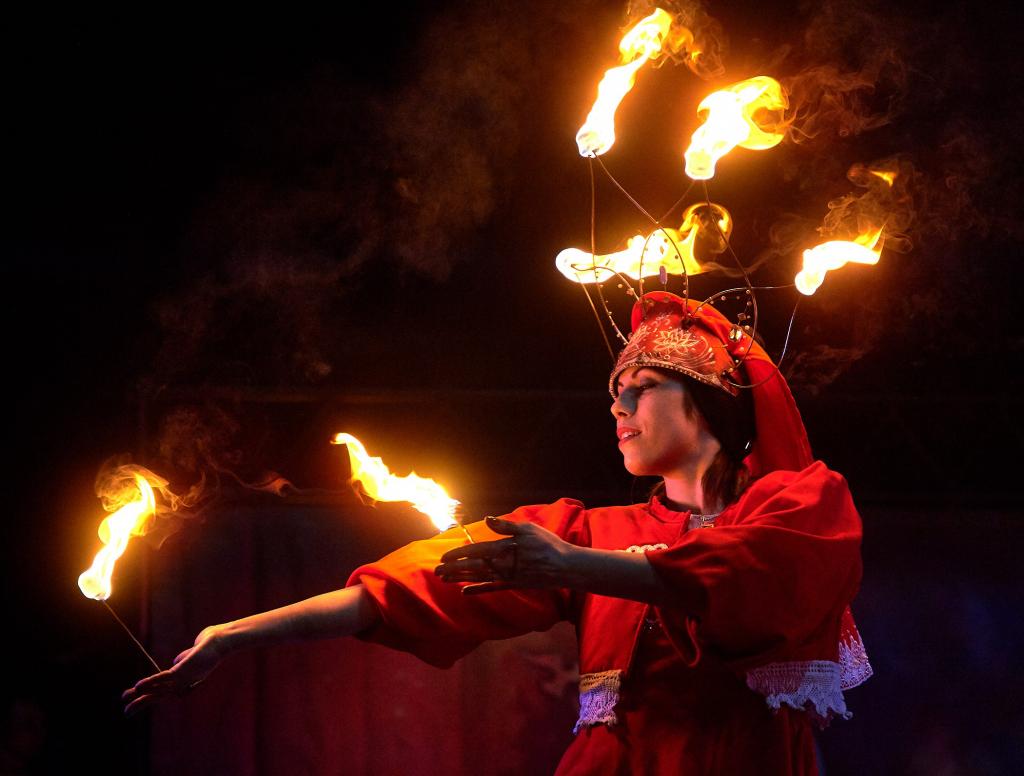 «Сам огонь мы начинаем использовать только на улице. На самом деле, если просто провести по телу огненным реквизитом, то ничего не будет, кроме следа от сажи. Единственный раз в жизни я обожглась, да и то – от чайника», – смеётся Алёна.
