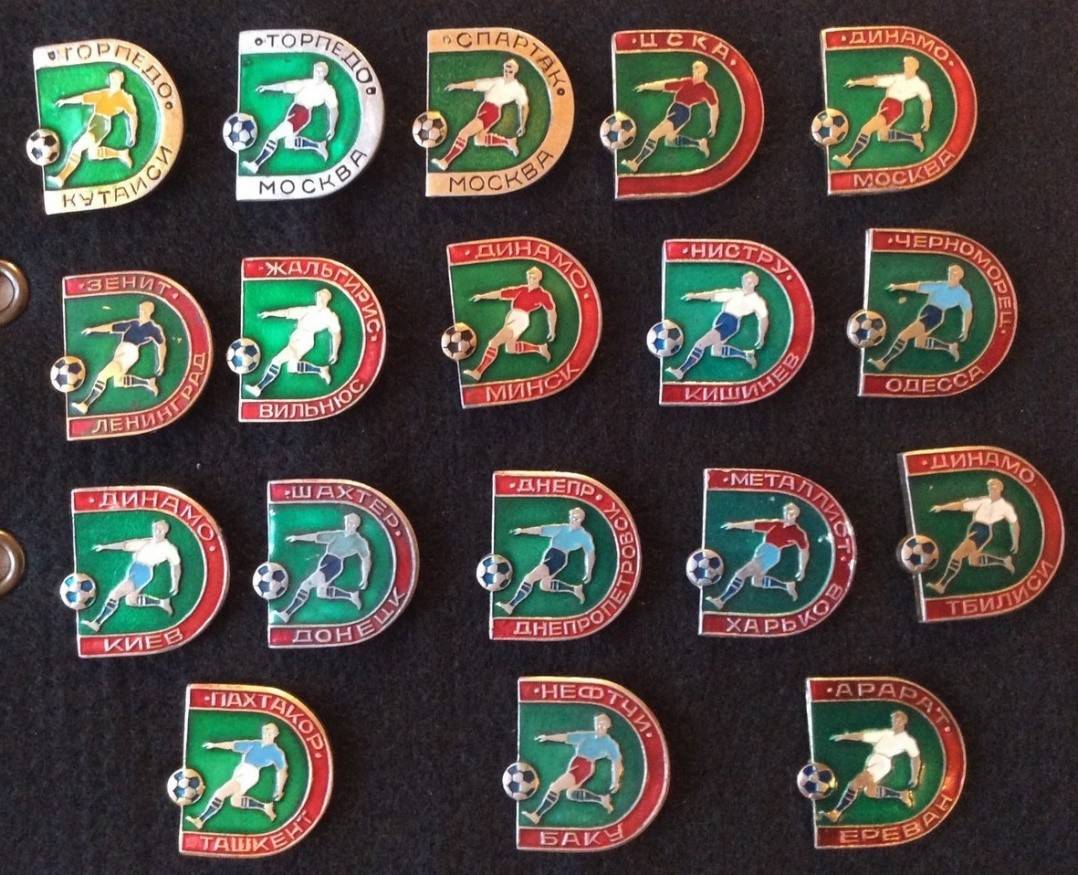 Нас же интересует фалеристика применительно к футболу, и тут есть о чём рассказать. В СССР культура выпуска значков была развита на очень высоком уровне. Промышленные заводы брали «в нагрузку» выпуск футбольных и хоккейных серий. Основными центрами выпуска являлись Москва и Киев. Отличались значки дизайном, тиражом и клеймом производителя.