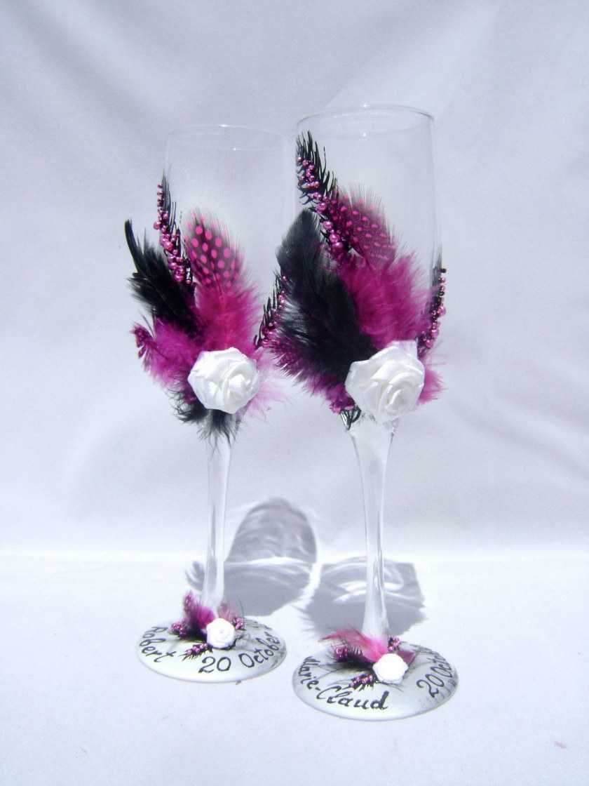 Нужно учитывать, что перья не могут выступать в качестве единственного элемента, но они прекрасно сочетаются с другими материалами. План действий по созданию бокалов с перьями: