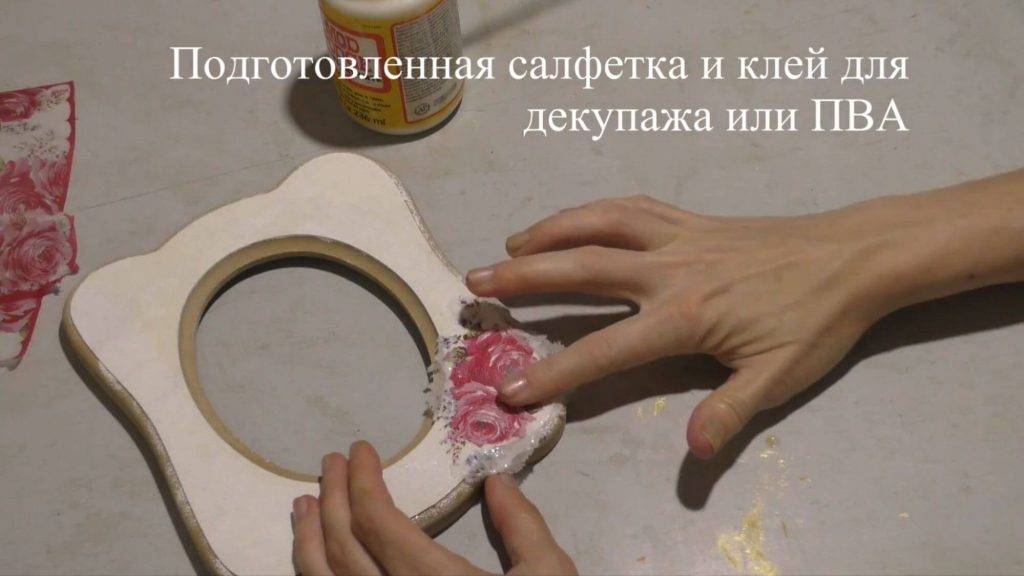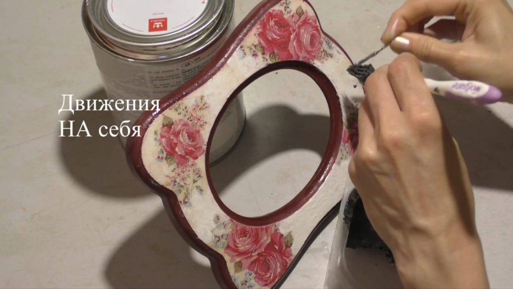 - декупаж рамки из стекла выполняется на задней плоскости объекта декорирования;