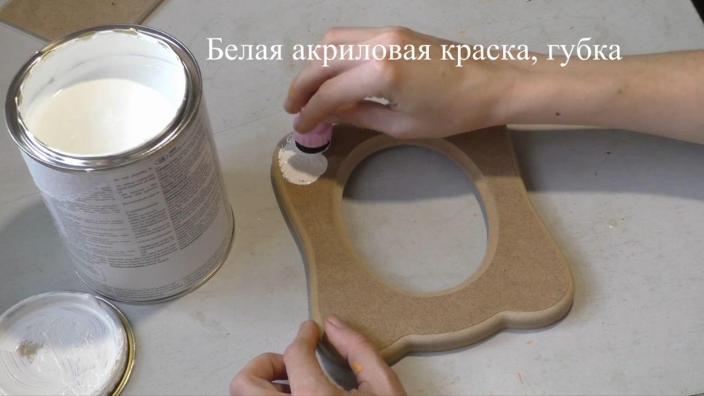 - Следующий этап заключается в покраске рамки белым цветом. Для этого можно использовать меловую или обычную художественную краску. Белый цвет можно затонировать, добавляя каплю краски ванильного цвета. Слой краски должен хорошо просохнуть, для этого потребуется достаточное количество времени.