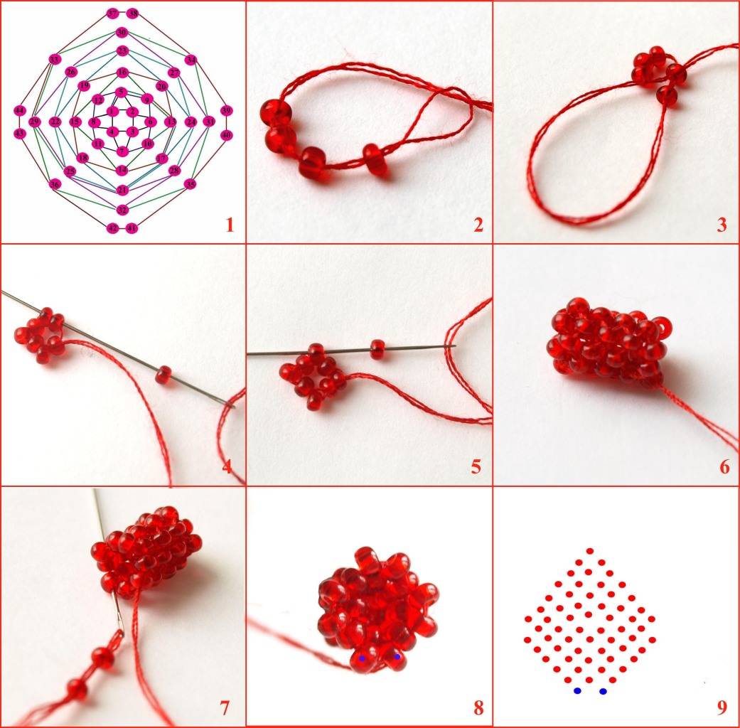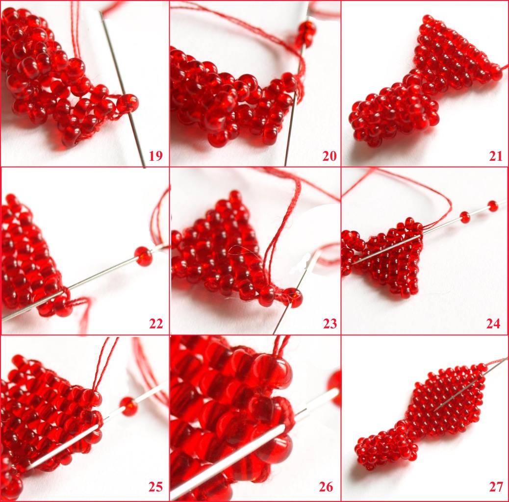 Понадобятся 4 красные бусины и предельное внимание в следовании схеме