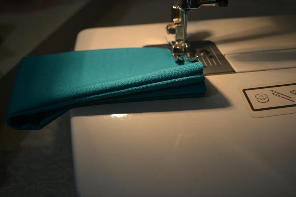 Следующий шаг — складываем проглаженную деталь пополам швом наружу и прошиваем, отступив 5 мм от края.