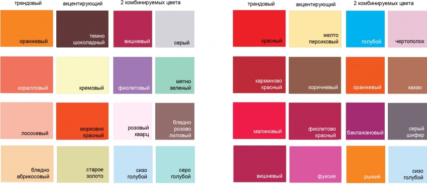 Пример схем сочетания красного и оранжевых цветов с другими подходящими оттенками