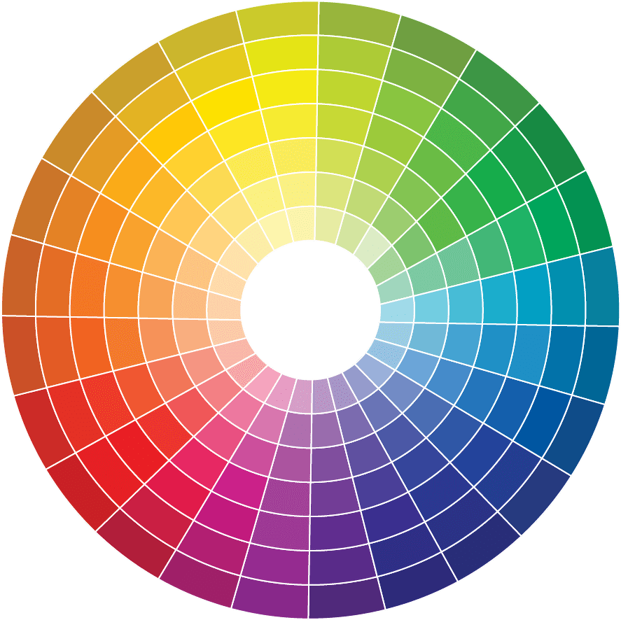 Для удачного подбора дизайна любого помещения используют круг сочетания цветов. Его структура состоит из 12 секторов. Каждый сектор содержит один цвет, а точнее все его оттенки. Градуирование происходит от светлого тона в центре и до темного на краю круга.