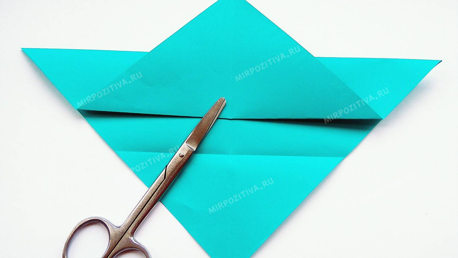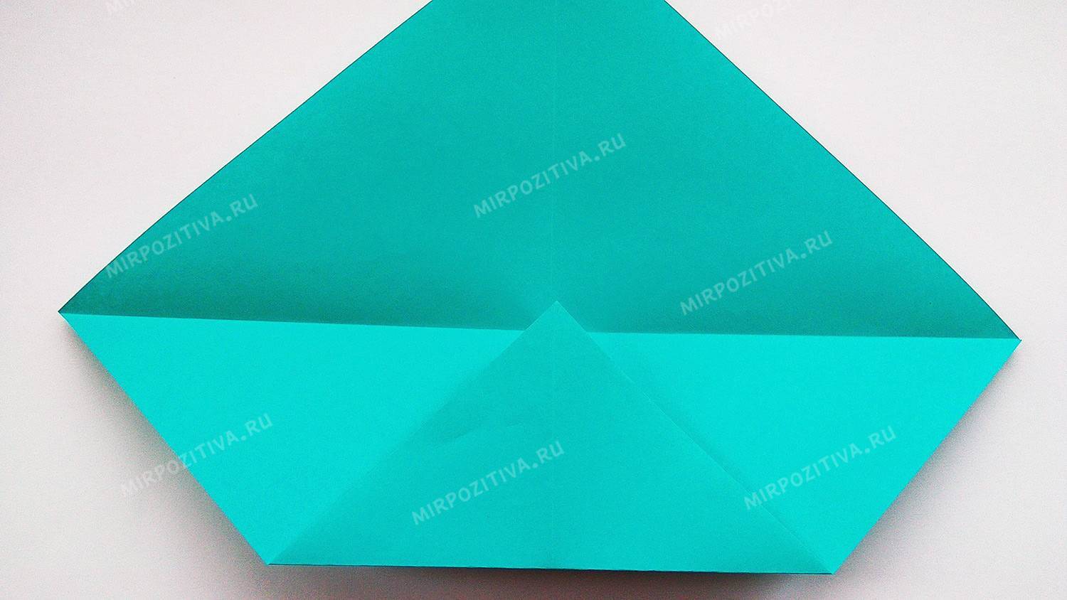 - Левый и правый углы заверните к середине, чтобы верхушки треугольников встретились точно в центре.