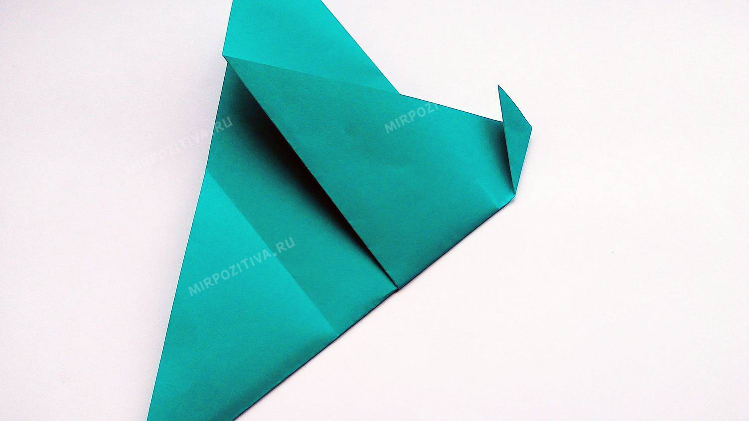 - Загните верхнюю часть (это будет хвост) вправо, вдоль линии крыла.