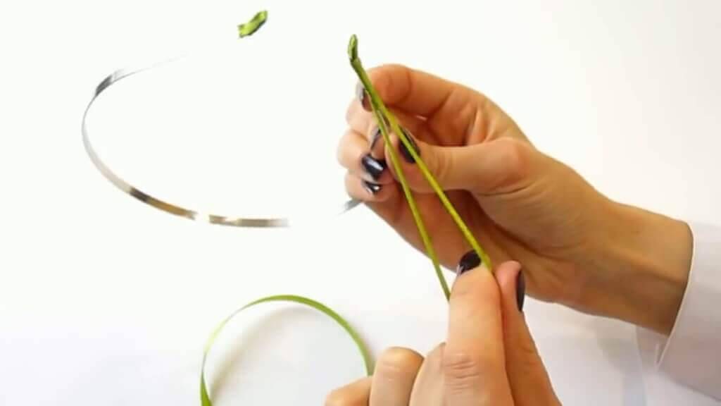 - Производим аналогичные действия со всеми ленточками, из которых и будет состоять наш цветок.