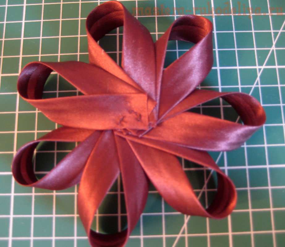 И от центра начинаем стягивать дольки нашей игольницы. Мне этот процесс очень нравится, вещица на глазах приобретает интересную форму. Чтобы дольки были ровные, делим её сначала на 2 равные половины, потом на 4 и т.д.