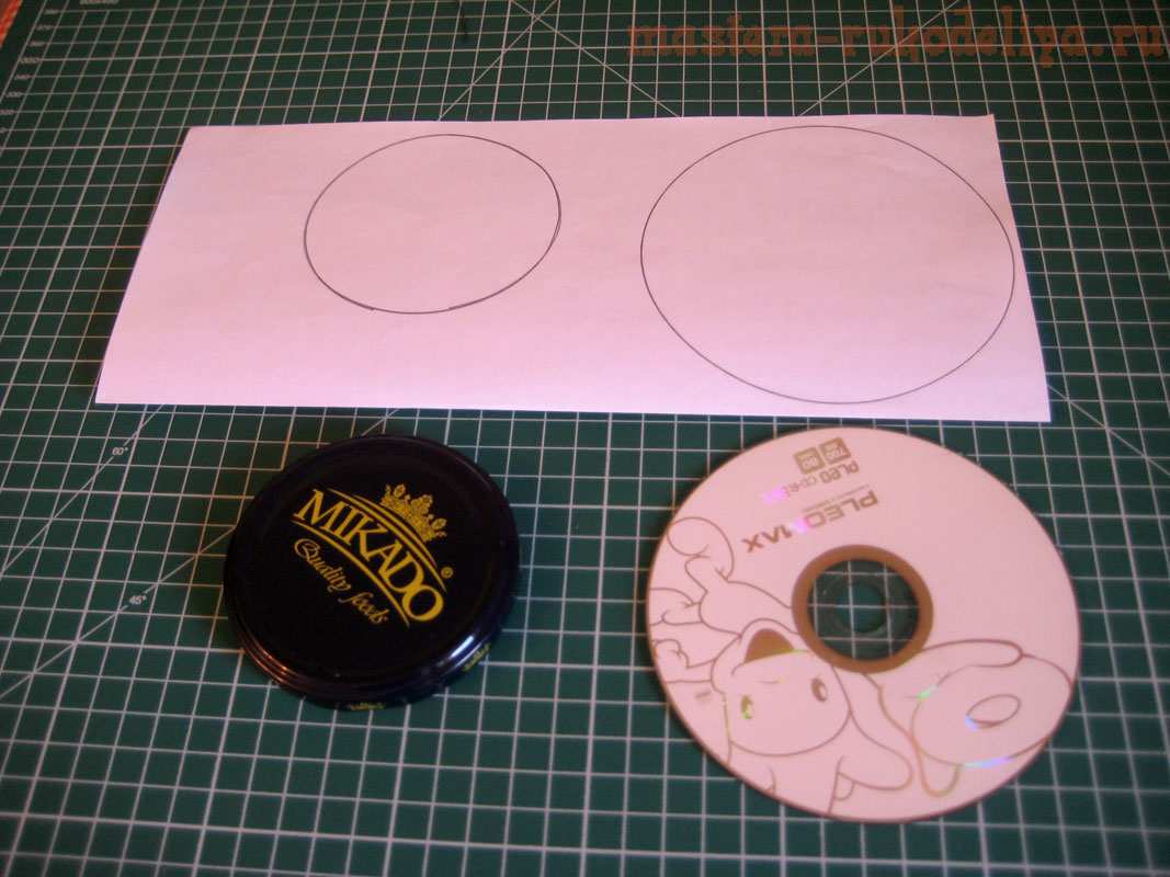 Для удобства можно использовать резак для кругов, но если его нет в наличии, то следует обойтись обычным циркулем и ножницами. Если есть клеевой пистолет, то лучше воспользоваться им.