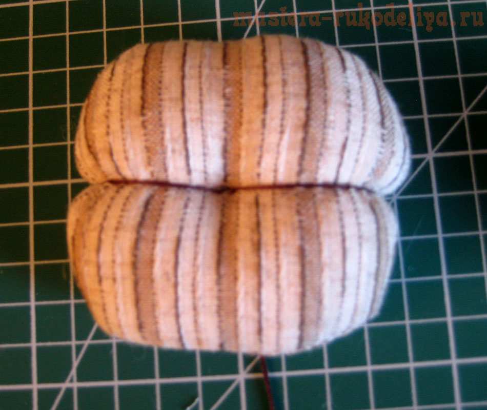 Набиваем синтепухом. На фото видно, что полосатая часть далека от круглой формы. При утяжке от этого легко избавиться.