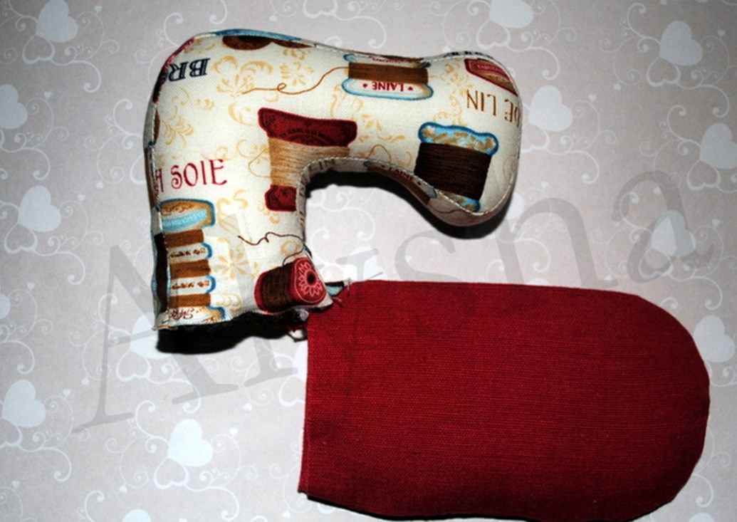 Вырежи заготовку, прострочи по периметру и оставь небольшой участок, чтобы вывернуть. Если у тебя есть ножницы зигзаг, используй их на припусках, чтобы края меньше расползались. Постепенно наполни игольницу, начиная с хобота и уплотняя наполнитель тонкой палочкой или карандашом.