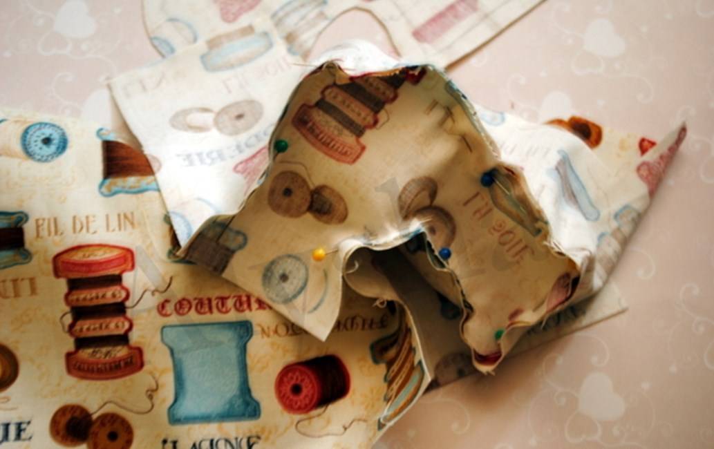 Ткань необходимо сложить лицевой стороной друг к другу и сшить швом «Иголка назад». Прошиваем две стороны, чтобы образовался угол.