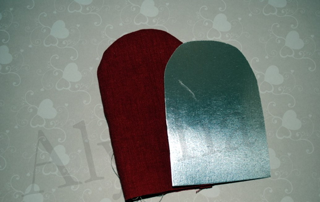 - Закрепите детали внутри ткани с помощью стежков, прошив изделие вокруг картонного каркаса.