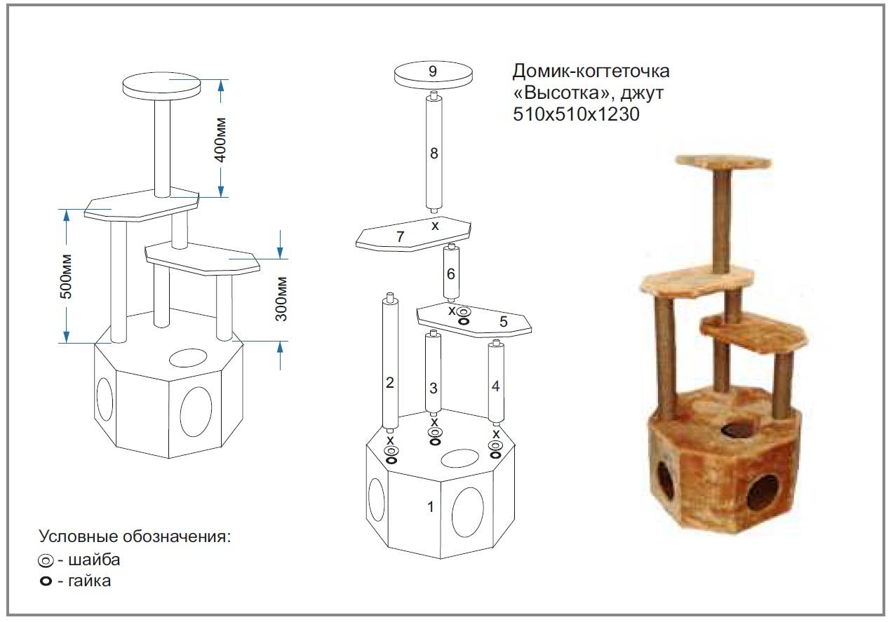 Конструкция «развлекательного центра» для кошек обязана быть прочной, безопасной для животных и даже для целых групп кошачьих.