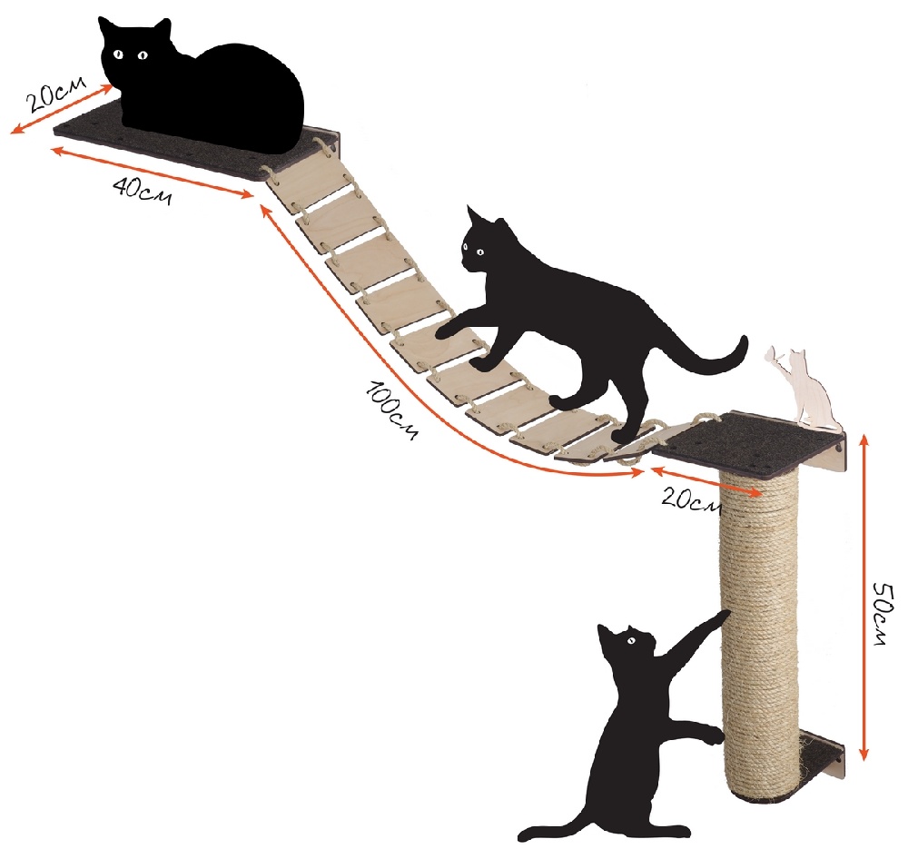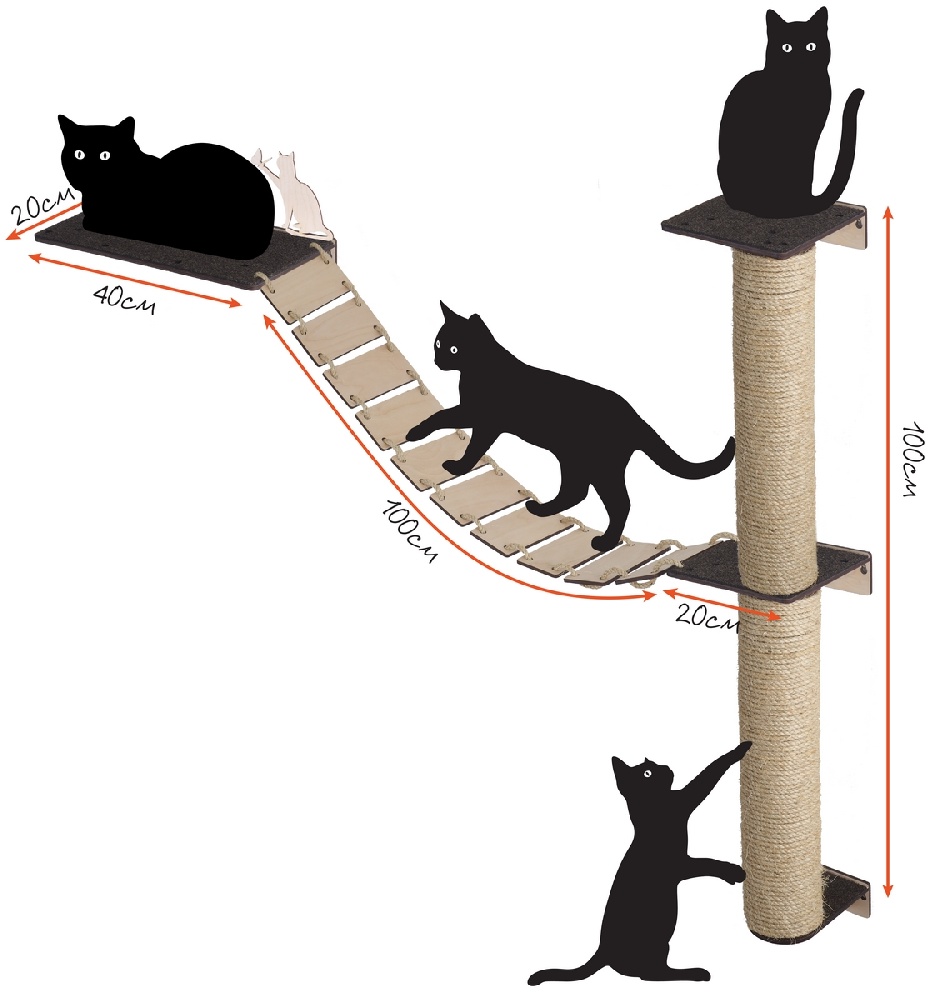 При конструировании комплекса для кошек крупного размера, необходимо особое внимание уделять габаритам и форме будущего изделий. Ведь крупные кошки и весят немало, естественно, что конструкция, материал и крепежные детали обязаны иметь высокий уровень «сейсмоустойчивости».