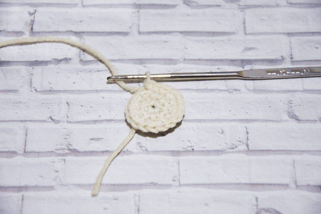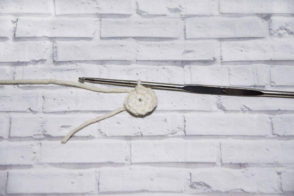 Вяжем оставшиеся 5СБН и сильно стягиваем кольцо за кончик оставленной нитки.