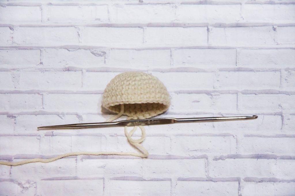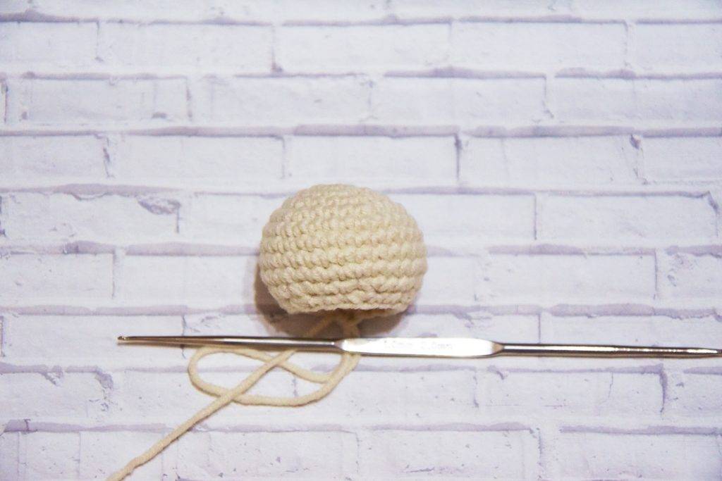 Стягиваем отверстие. Голова пупса амигуруми также готова.
