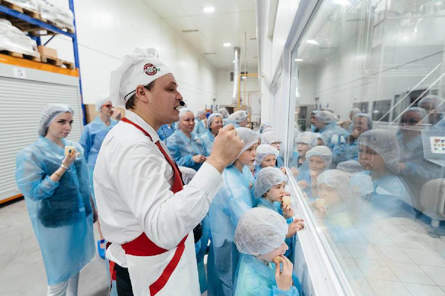 В течение полутора часов гости предприятия могут увидеть все этапы производства мороженого: как осуществляются доставка и смешивание ингредиентов, фризерование, созревание, формовка, как наполняются вафельные стаканчики, как эскимо покрывается глазурью, как продукция упаковывается для продажи. Есть возможность пройти мастер-класс по украшению мороженого. По будням на фабрике проводятся платные групповые экскурсии для школьников и взрослых. А по субботам могут приехать индивидуальные посетители. Экскурсии адаптированы для людей с особенностями здоровья.