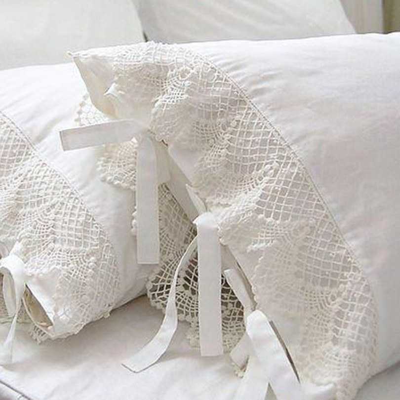 Если вы решили изготовить наволочку из ажурной одежды, позаботьтесь о подкладке подходящего тона. Выигрышно будут смотреться атласные подкладки. Если подкладку не сделать, подушка будет на такой красивой.