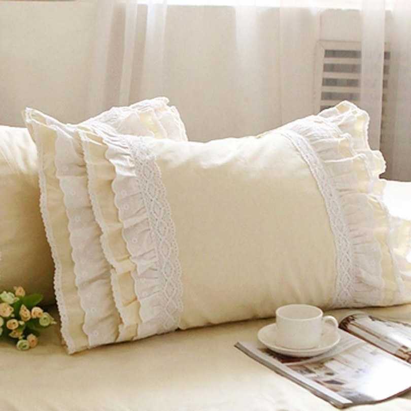 Декор кружевами Пошить наволочку по инструкции достаточно просто, ведь это всего лиши прямоугольник, сложенный пополам и застроченный с левого и правого края таким образом, чтобы получилось что-то вроде мешочка. Наволочки бывают с запахом. На пуговицах или на змейке, форма и размер зависят от размера подушки. При желании наволочку можно декорировать бисером, лентами, пуговицами, лоскутками.