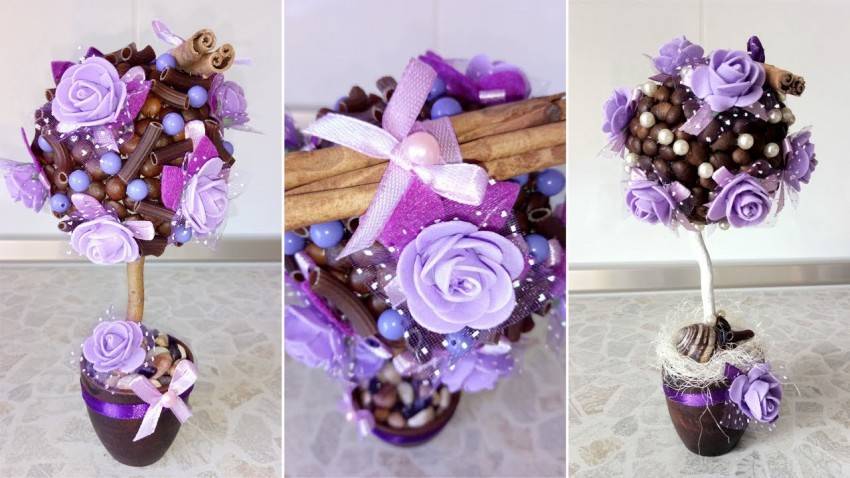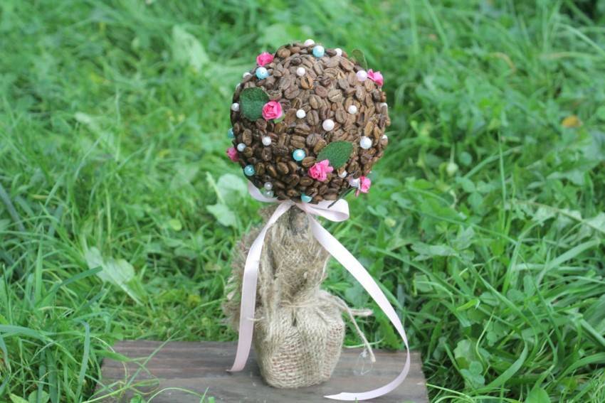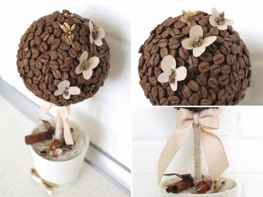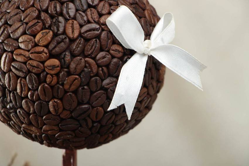 Декоративное дерево или топитарий – идеальное украшение дома или офиса. Как правило, крона такого изделия изготавливается из кофейных зернышек. Дабы изготовить кофейное дерево, запаситесь следующими материалам: