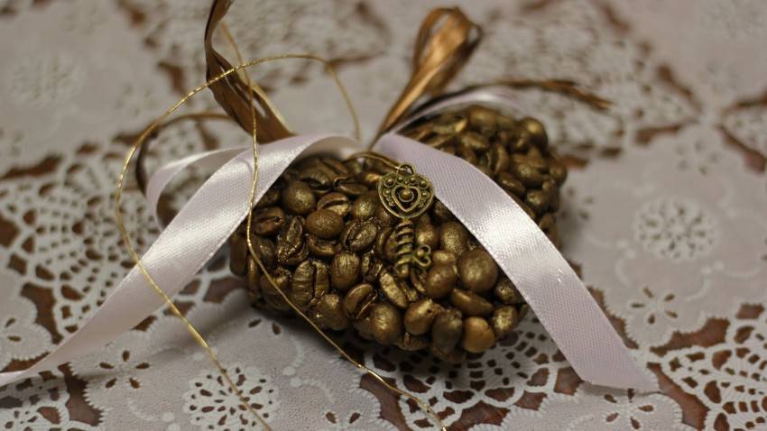 Порадуйте своего любимого человека необычным сердечком, изготовив его из кофейных зерен. Выполняется такая поделка очень просто и не требует большого числа материала. Для поделки из зерен кофе запаситесь: