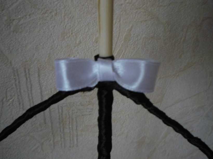 - Палочку-опору обернуть шнуром или ленточкой, закрепить клеем.