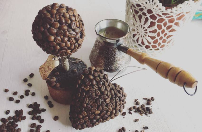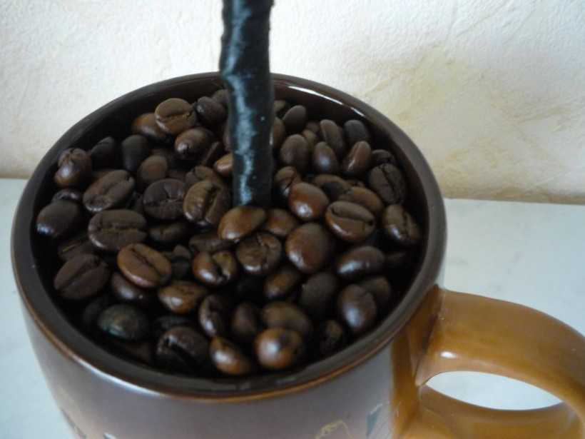 Одной из самых известных идей поделок из кофейных зерен является так называемое кофейное дерево. Для создания ароматного топиария необходимо иметь в наличии: