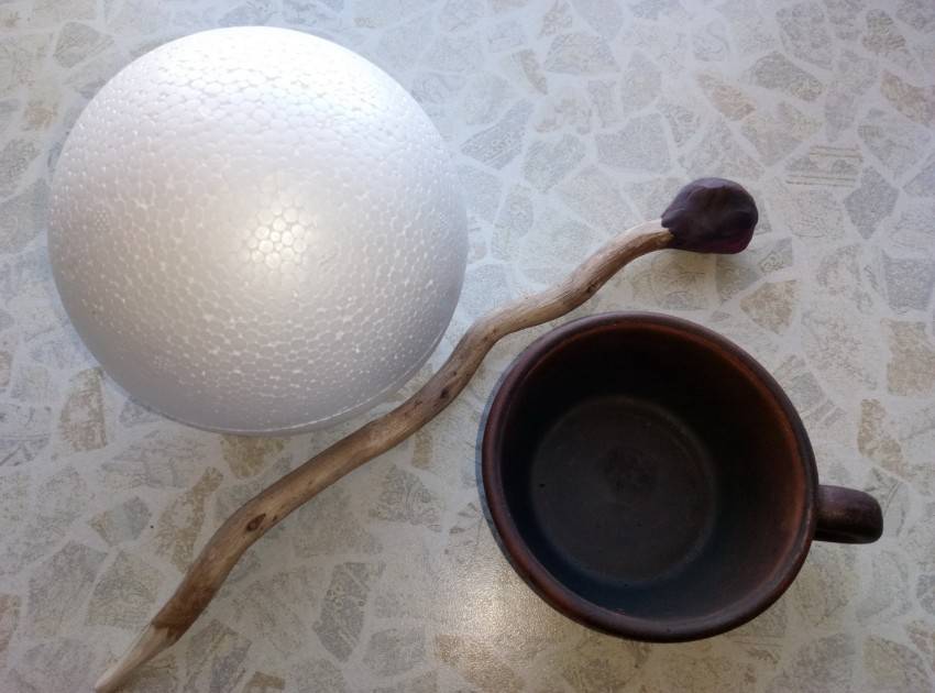 - Палочку вставить в пенопластовый шар и зафиксировать.