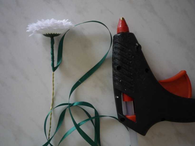 Кроме того, вам придется взять палочку для ствола, ленточку и цветочный горшок.