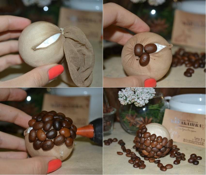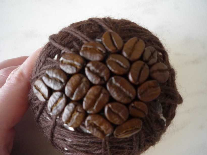 - Наклеить на поверхность шара зернышки кофе в соответствии с задумкой.