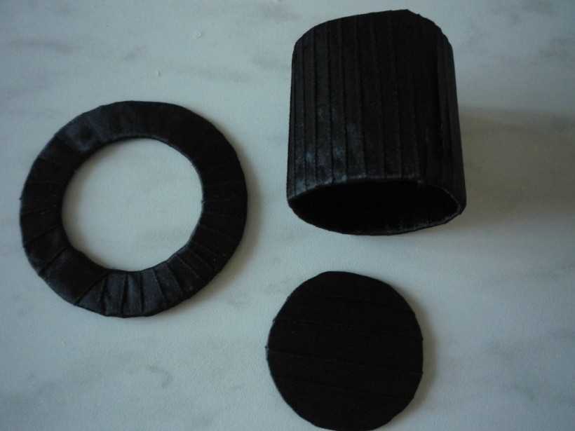 - Плотный лист картона обтяните тканью, закрепив ее клеем с противоположной стороны