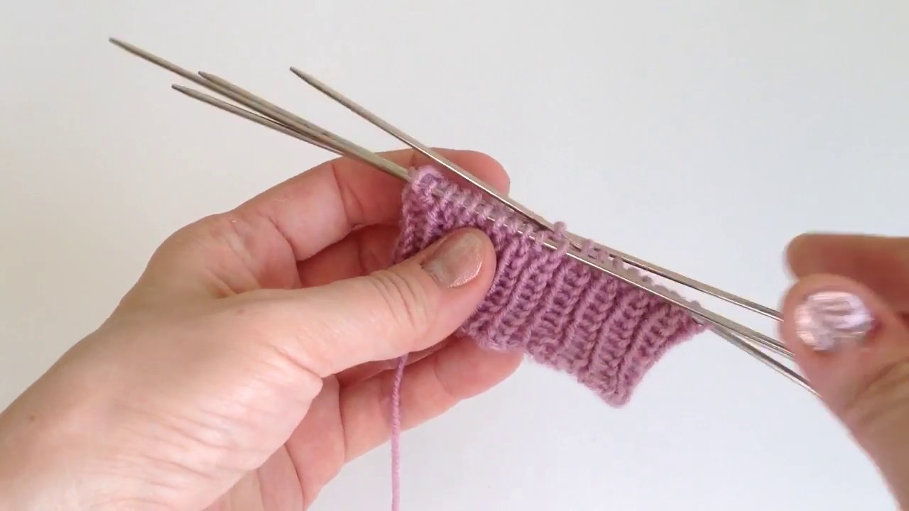 Крайние петли резинки переводят на другую спицу. Затем вязание складывают пополам – изнанкой вовнутрь. Теперь потребуется третья спица. Ею поочередно с обоих краев провязывают петли.
